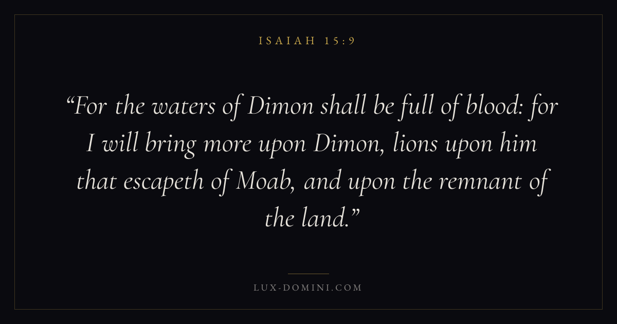 For the waters of Dimon shall be full of blood: for I will bring more upon Dimon, lions upon him that escapeth of Moab, and upon the remnant of the land.