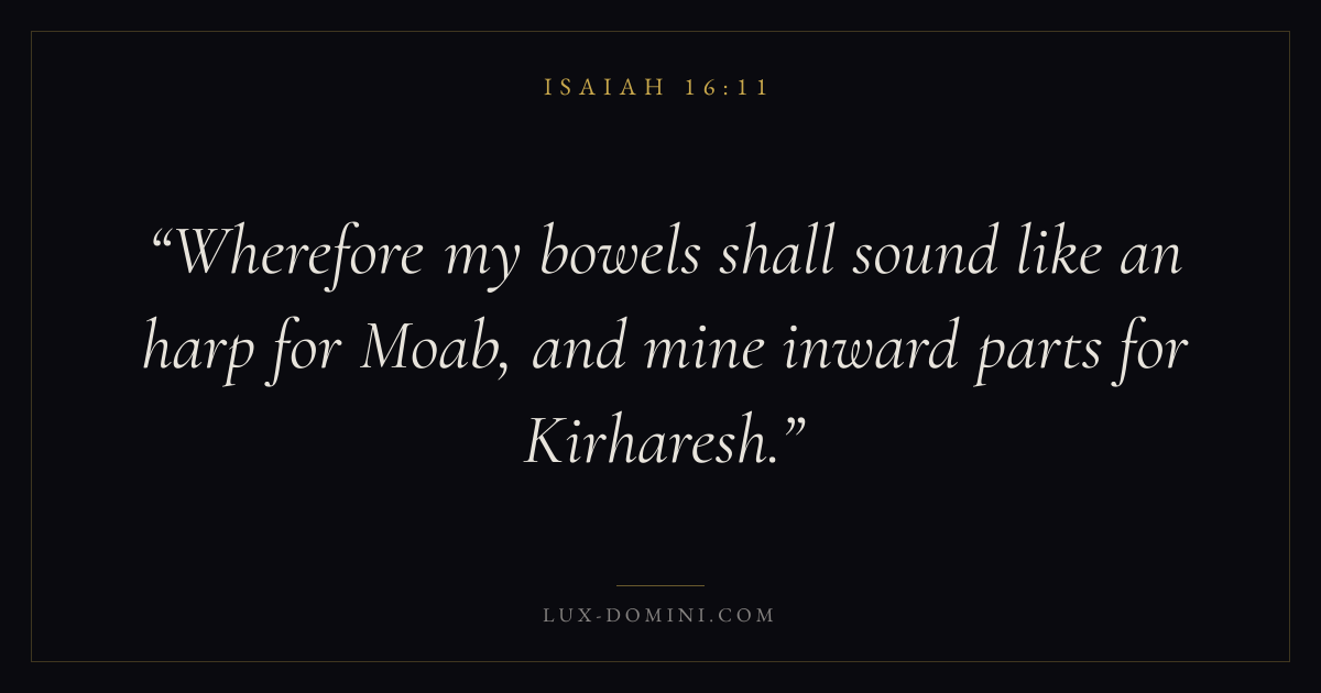 Wherefore my bowels shall sound like an harp for Moab, and mine inward parts for Kirharesh.