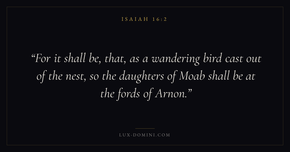 For it shall be, that, as a wandering bird cast out of the nest, so the daughters of Moab shall be at the fords of Arnon.