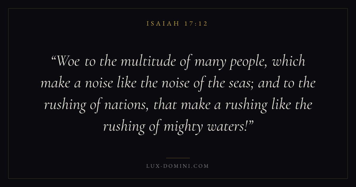 Woe to the multitude of many people, which make a noise like the noise of the seas; and to the rushing of nations, that make a rushing like the rushing of mighty waters!