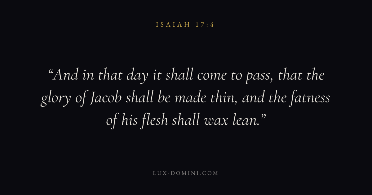 And in that day it shall come to pass, that the glory of Jacob shall be made thin, and the fatness of his flesh shall wax lean.