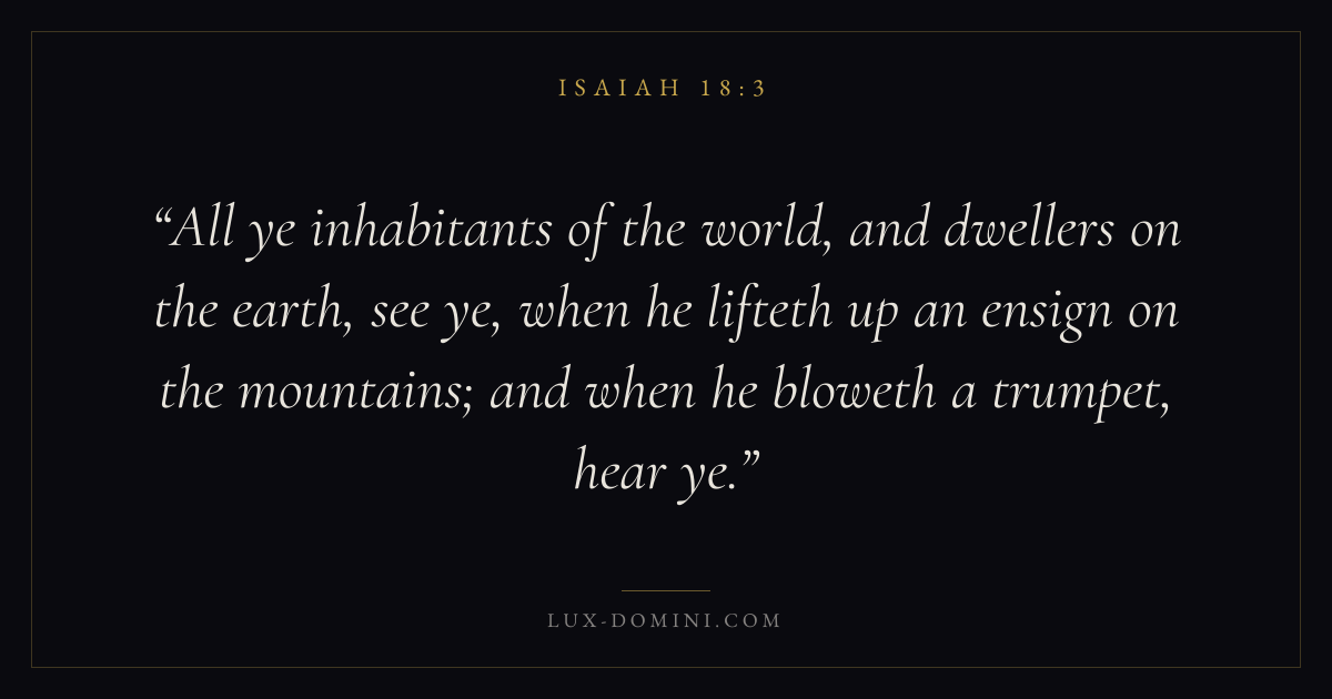 All ye inhabitants of the world, and dwellers on the earth, see ye, when he lifteth up an ensign on the mountains; and when he bloweth a trumpet, hear ye.