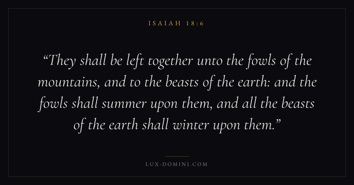 They shall be left together unto the fowls of the mountains, and to the beasts of the earth: and the fowls shall summer upon them, and all the beasts of the earth shall winter upon them.