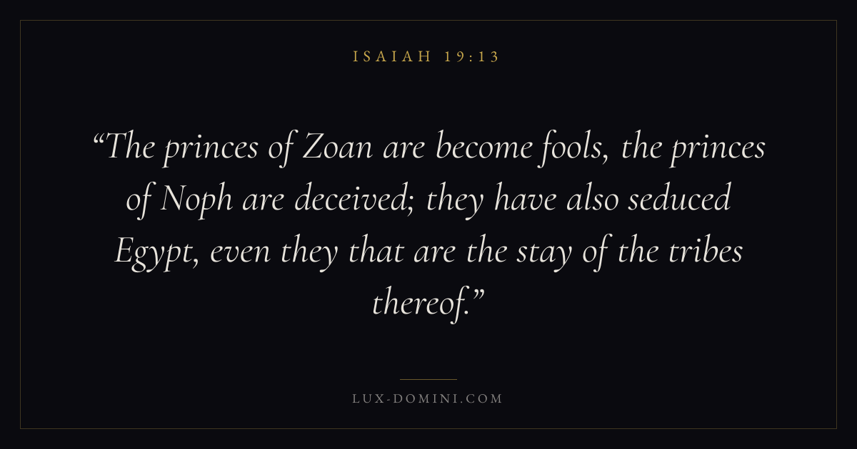 The princes of Zoan are become fools, the princes of Noph are deceived; they have also seduced Egypt, even they that are the stay of the tribes thereof.