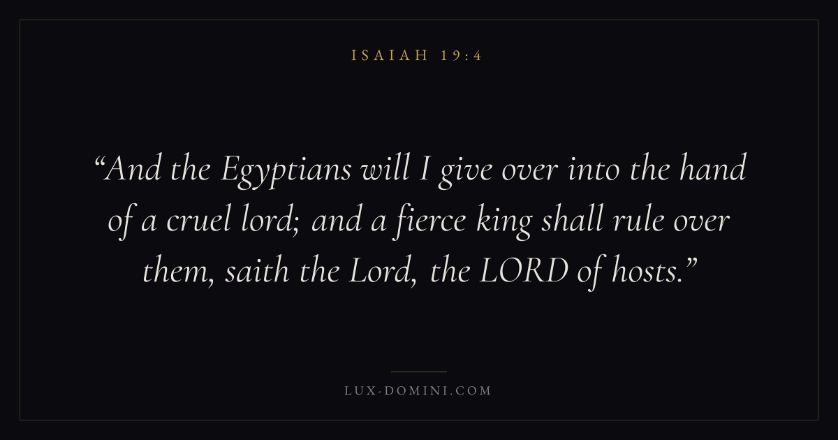 And the Egyptians will I give over into the hand of a cruel lord; and a fierce king shall rule over them, saith the Lord, the LORD of hosts.