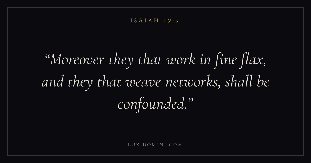 Moreover they that work in fine flax, and they that weave networks, shall be confounded.