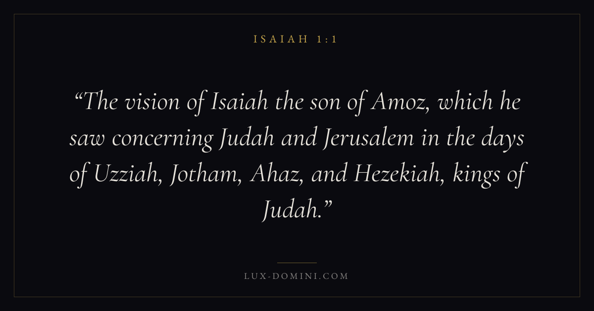 The vision of Isaiah the son of Amoz, which he saw concerning Judah and Jerusalem in the days of Uzziah, Jotham, Ahaz, and Hezekiah, kings of Judah.