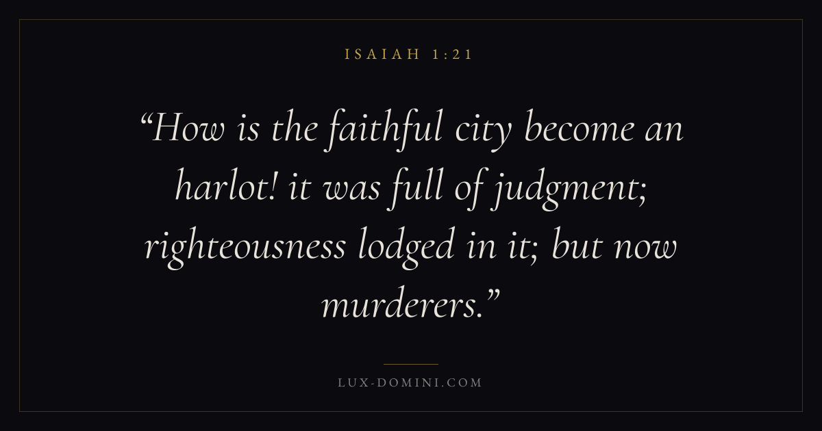 How is the faithful city become an harlot! it was full of judgment; righteousness lodged in it; but now murderers.