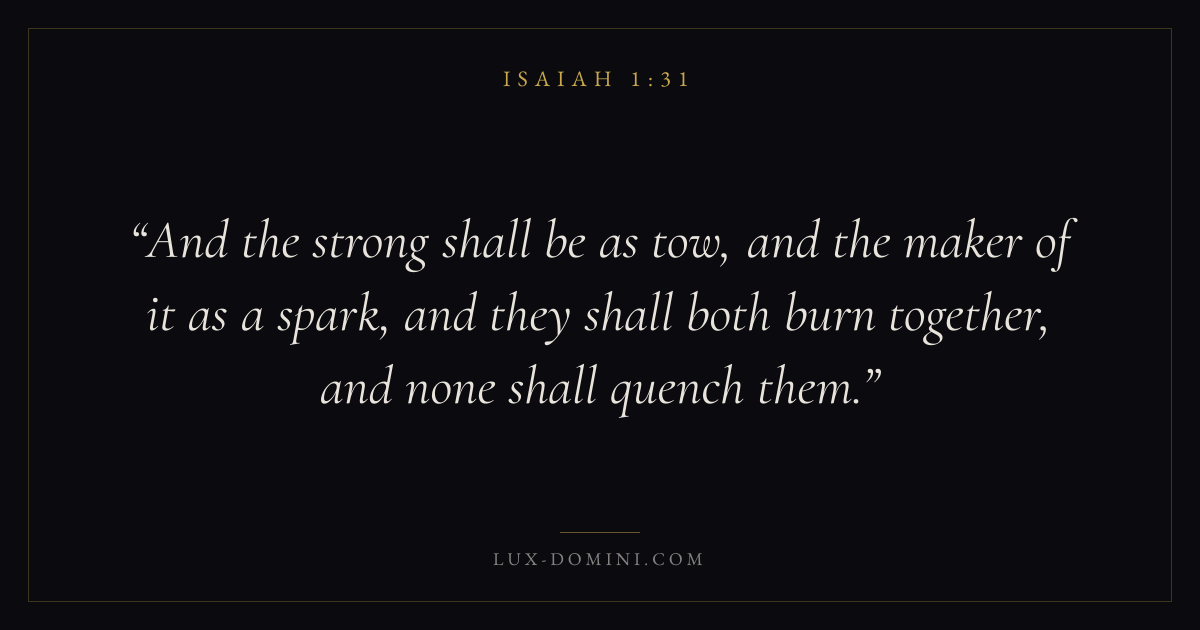 And the strong shall be as tow, and the maker of it as a spark, and they shall both burn together, and none shall quench them.