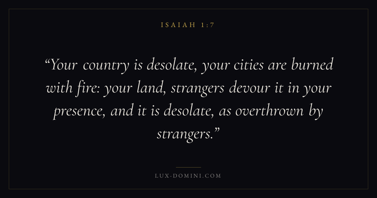 Your country is desolate, your cities are burned with fire: your land, strangers devour it in your presence, and it is desolate, as overthrown by strangers.