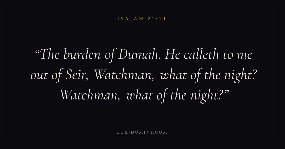 The burden of Dumah. He calleth to me out of Seir, Watchman, what of the night? Watchman, what of the night?