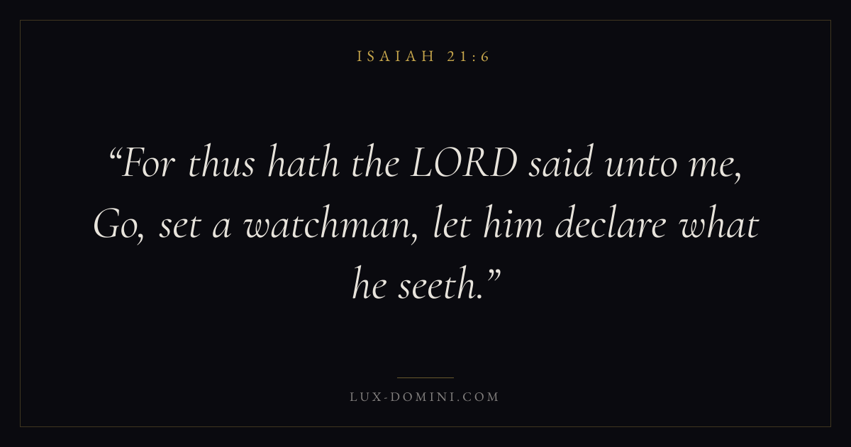 For thus hath the LORD said unto me, Go, set a watchman, let him declare what he seeth.