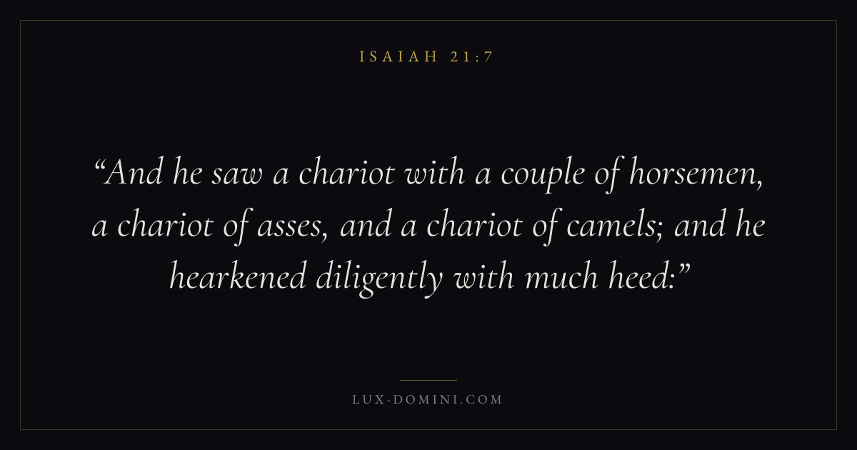 And he saw a chariot with a couple of horsemen, a chariot of asses, and a chariot of camels; and he hearkened diligently with much heed: