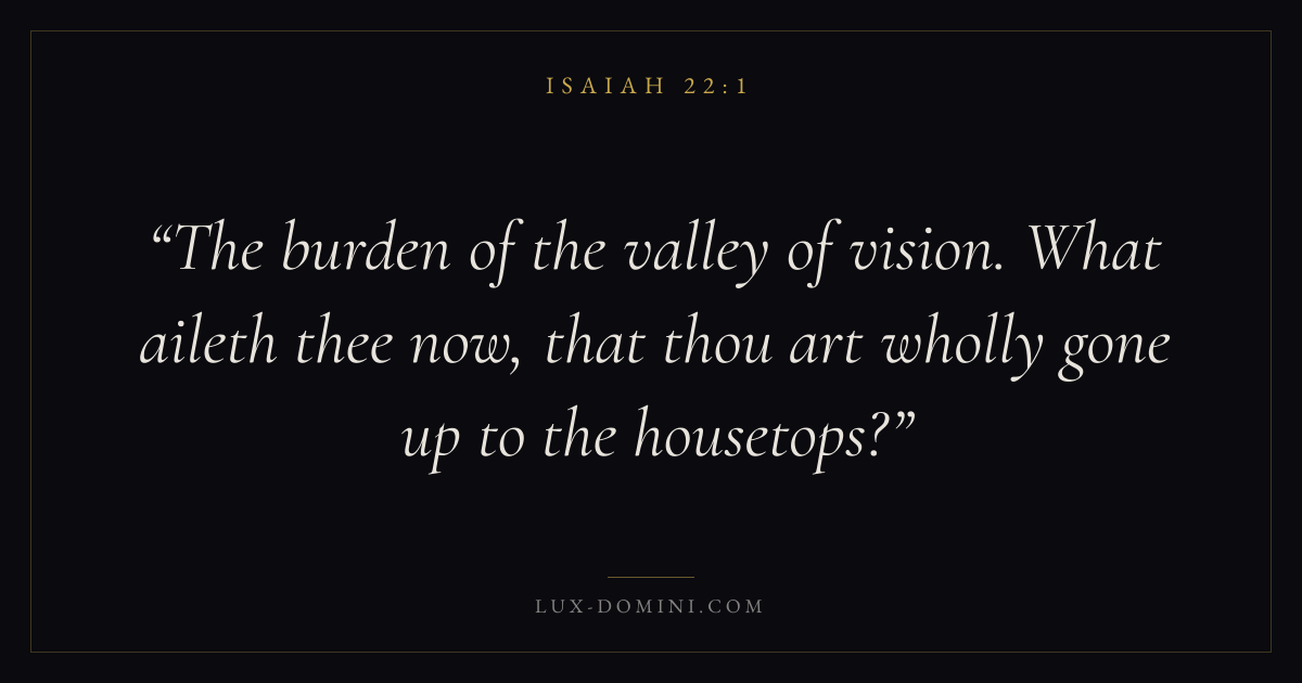 The burden of the valley of vision. What aileth thee now, that thou art wholly gone up to the housetops?