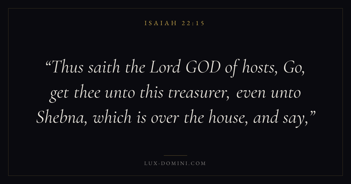 Thus saith the Lord GOD of hosts, Go, get thee unto this treasurer, even unto Shebna, which is over the house, and say,
