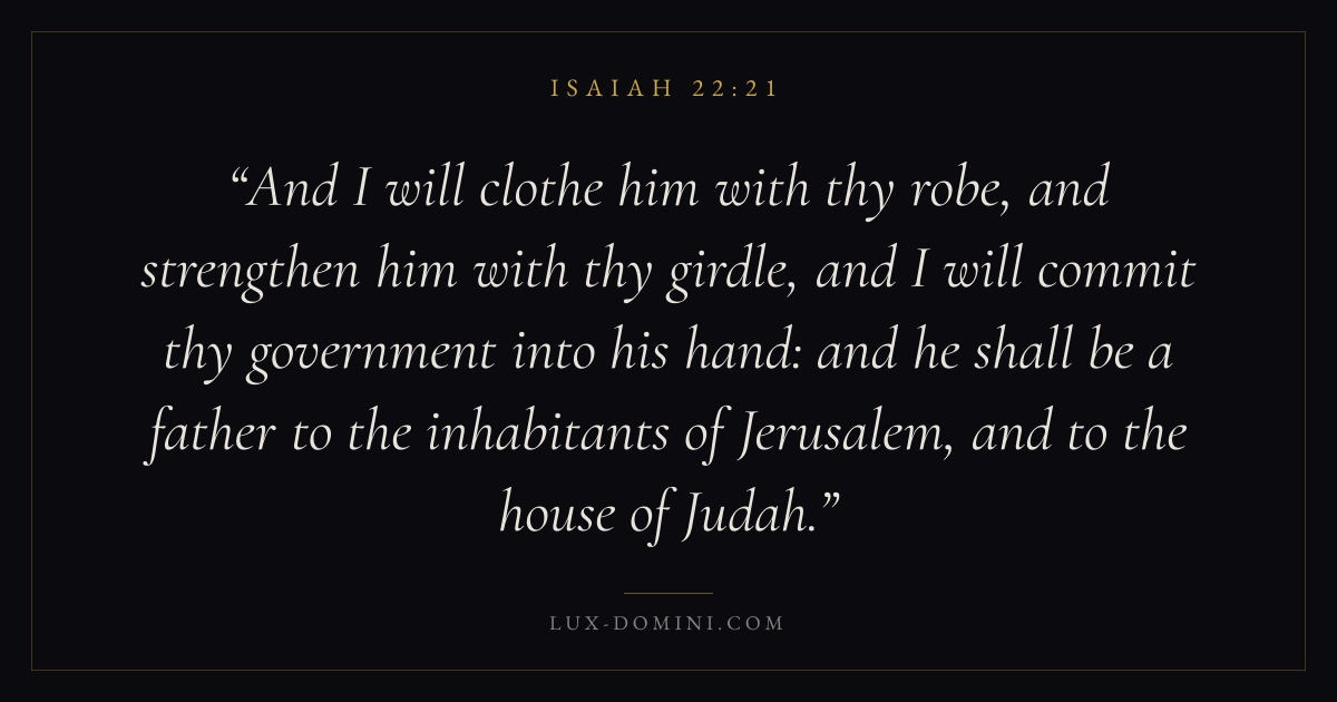And I will clothe him with thy robe, and strengthen him with thy girdle, and I will commit thy government into his hand: and he shall be a father to the inhabitants of Jerusalem, and to the house of Judah.