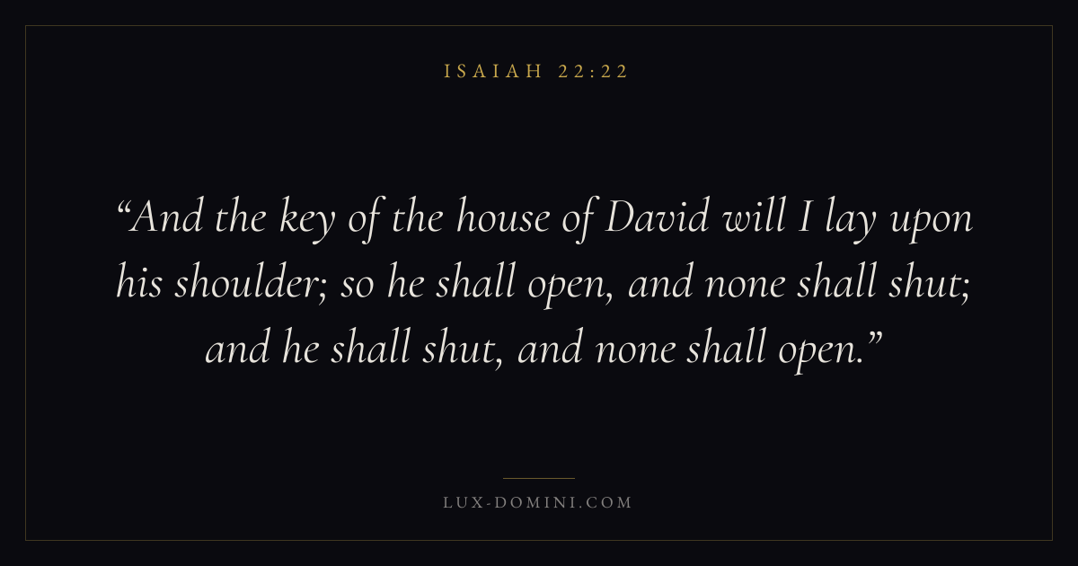 And the key of the house of David will I lay upon his shoulder; so he shall open, and none shall shut; and he shall shut, and none shall open.