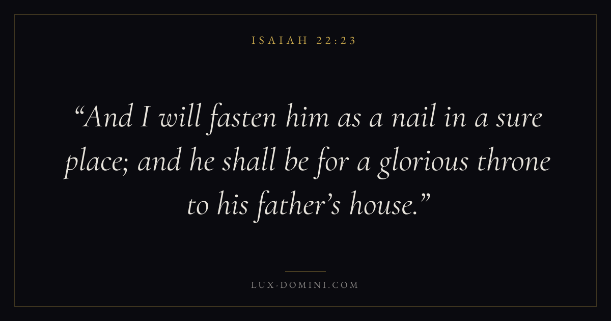 And I will fasten him as a nail in a sure place; and he shall be for a glorious throne to his father’s house.