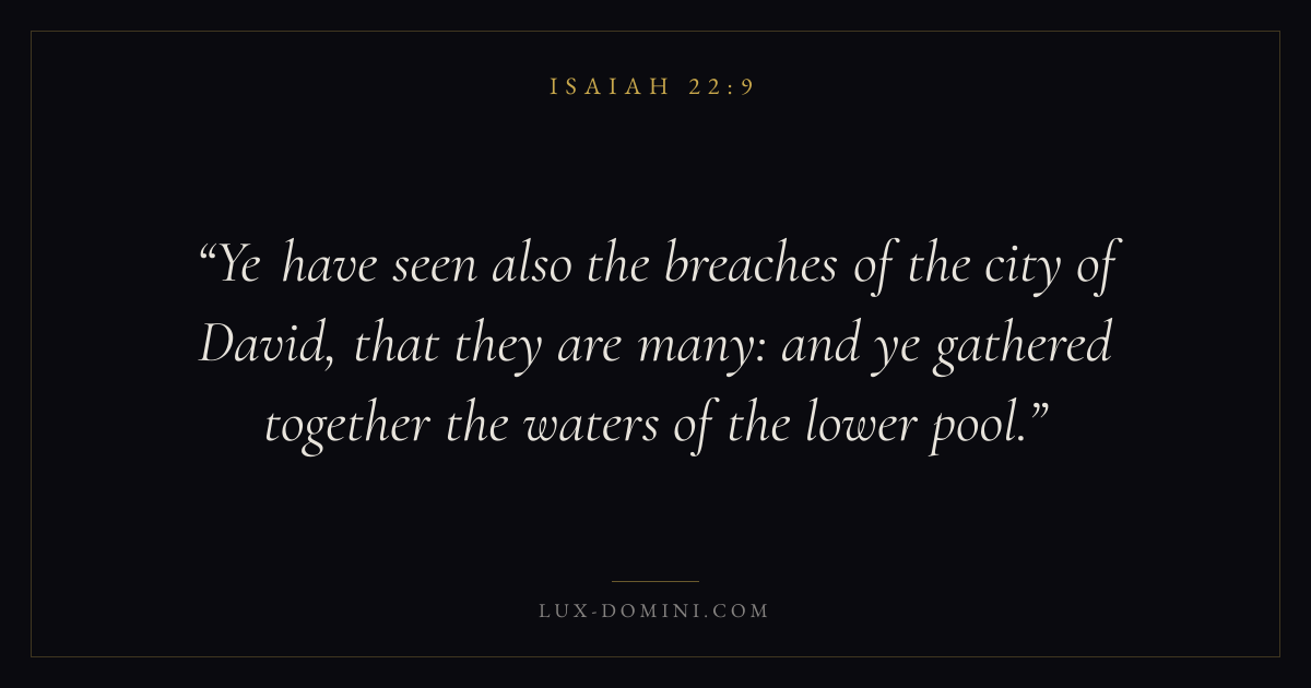Ye have seen also the breaches of the city of David, that they are many: and ye gathered together the waters of the lower pool.
