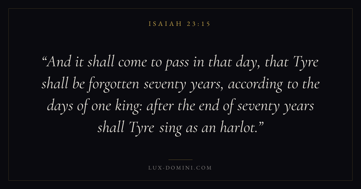 And it shall come to pass in that day, that Tyre shall be forgotten seventy years, according to the days of one king: after the end of seventy years shall Tyre sing as an harlot.