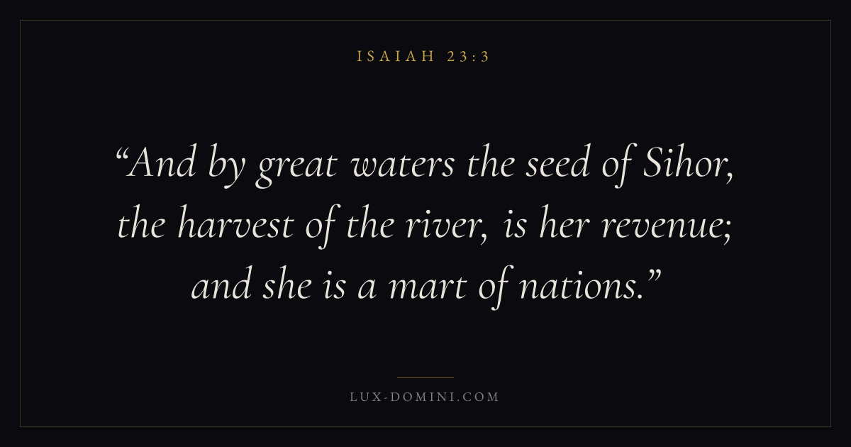 And by great waters the seed of Sihor, the harvest of the river, is her revenue; and she is a mart of nations.