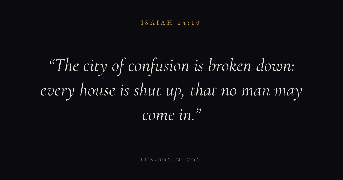 The city of confusion is broken down: every house is shut up, that no man may come in.