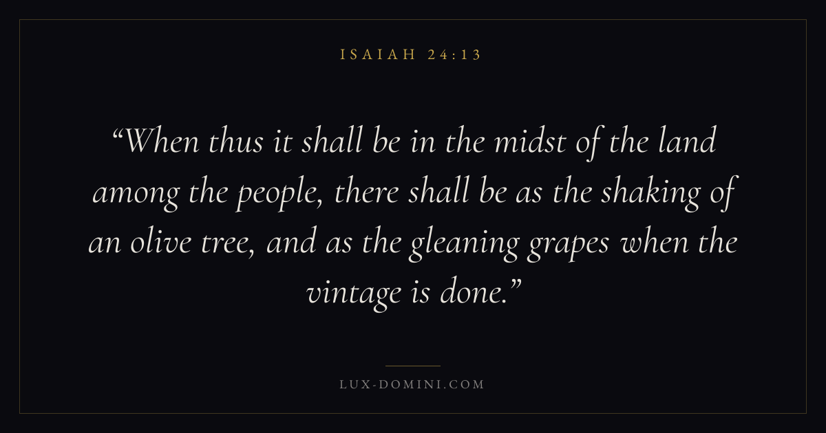 When thus it shall be in the midst of the land among the people, there shall be as the shaking of an olive tree, and as the gleaning grapes when the vintage is done.