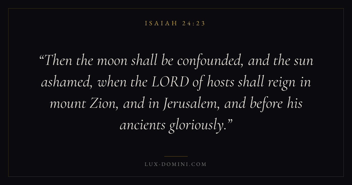 Then the moon shall be confounded, and the sun ashamed, when the LORD of hosts shall reign in mount Zion, and in Jerusalem, and before his ancients gloriously.