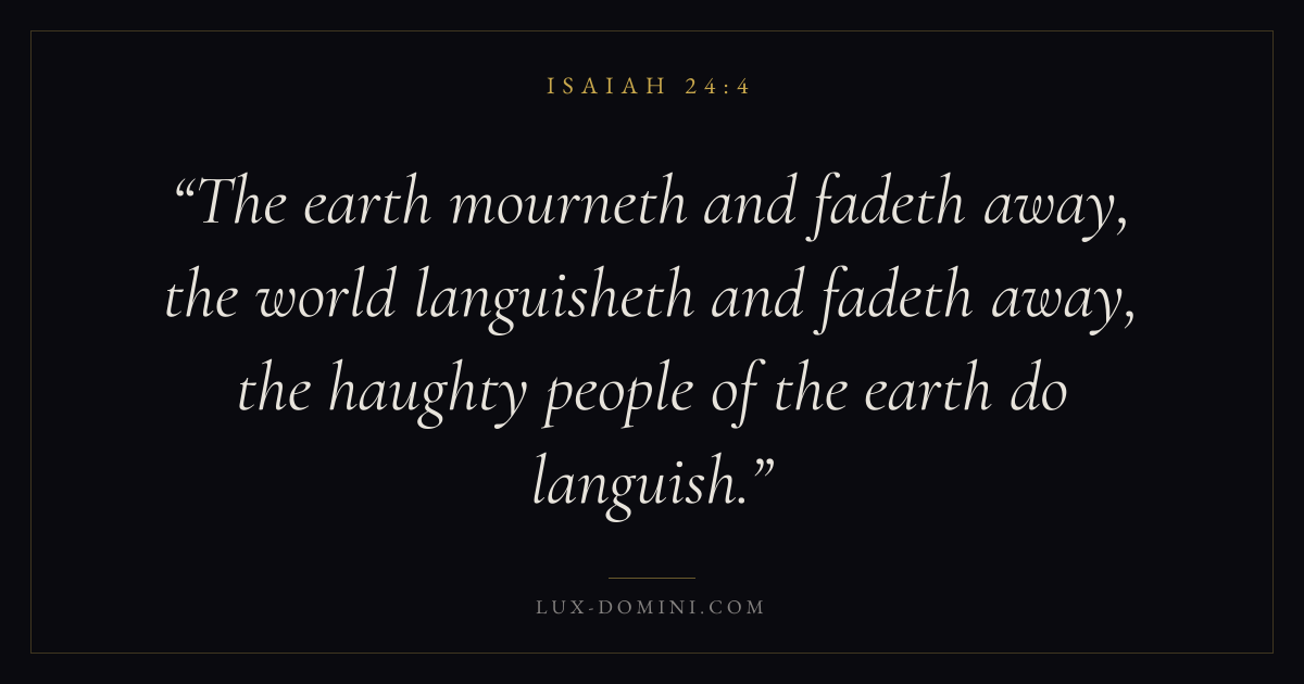 The earth mourneth and fadeth away, the world languisheth and fadeth away, the haughty people of the earth do languish.