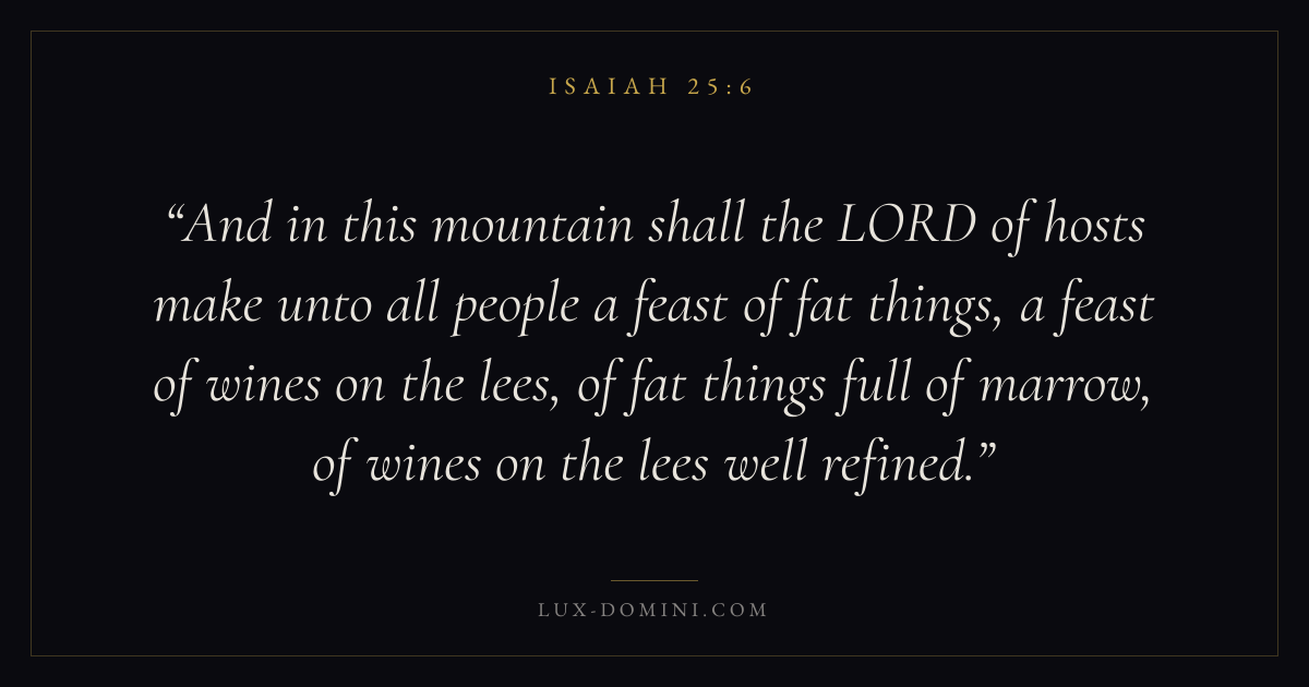And in this mountain shall the LORD of hosts make unto all people a feast of fat things, a feast of wines on the lees, of fat things full of marrow, of wines on the lees well refined.