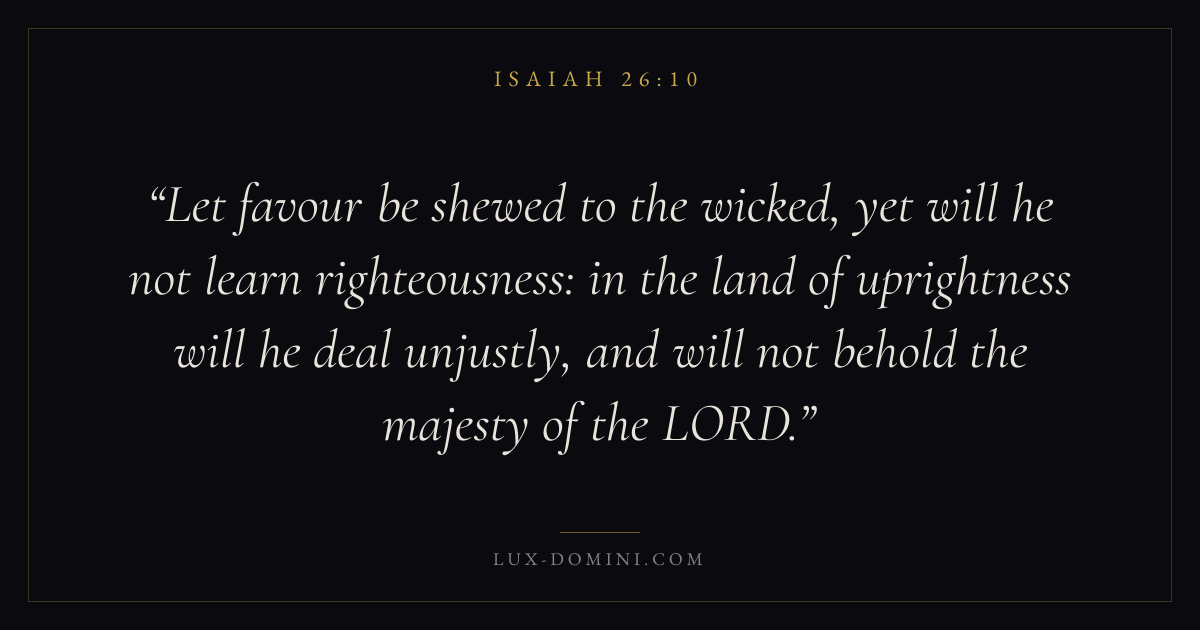 Let favour be shewed to the wicked, yet will he not learn righteousness: in the land of uprightness will he deal unjustly, and will not behold the majesty of the LORD.