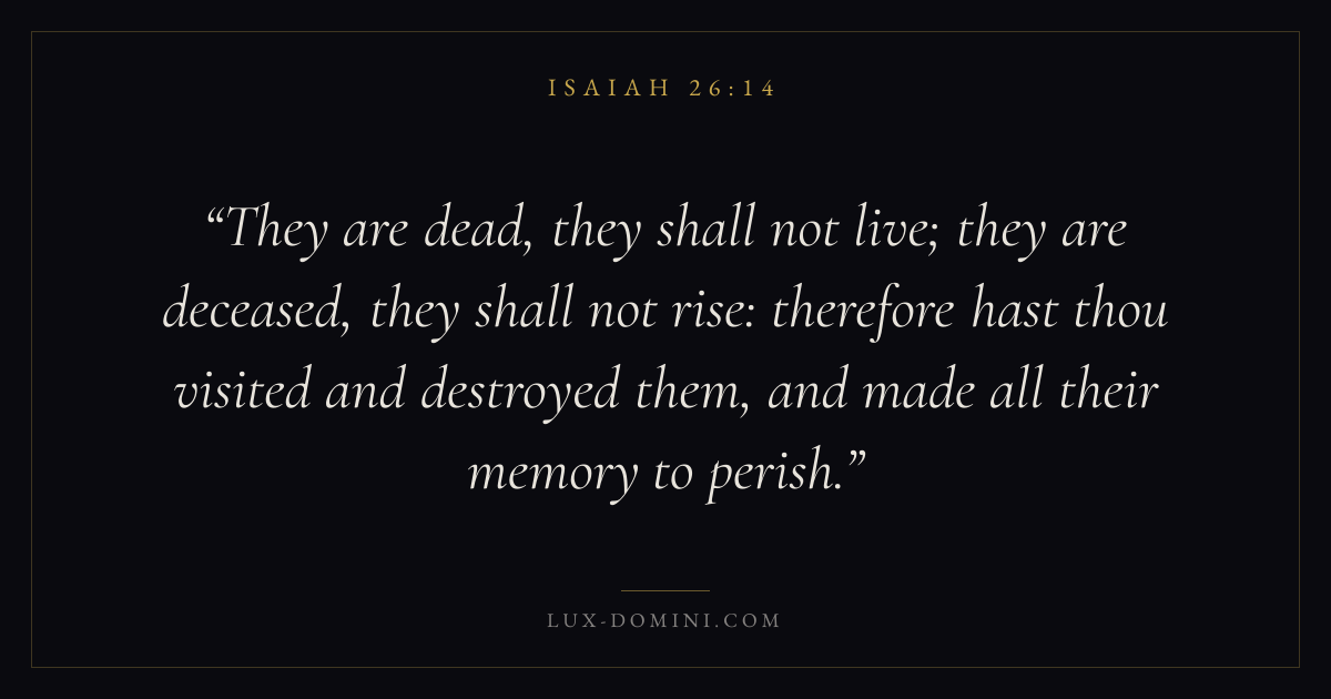 They are dead, they shall not live; they are deceased, they shall not rise: therefore hast thou visited and destroyed them, and made all their memory to perish.