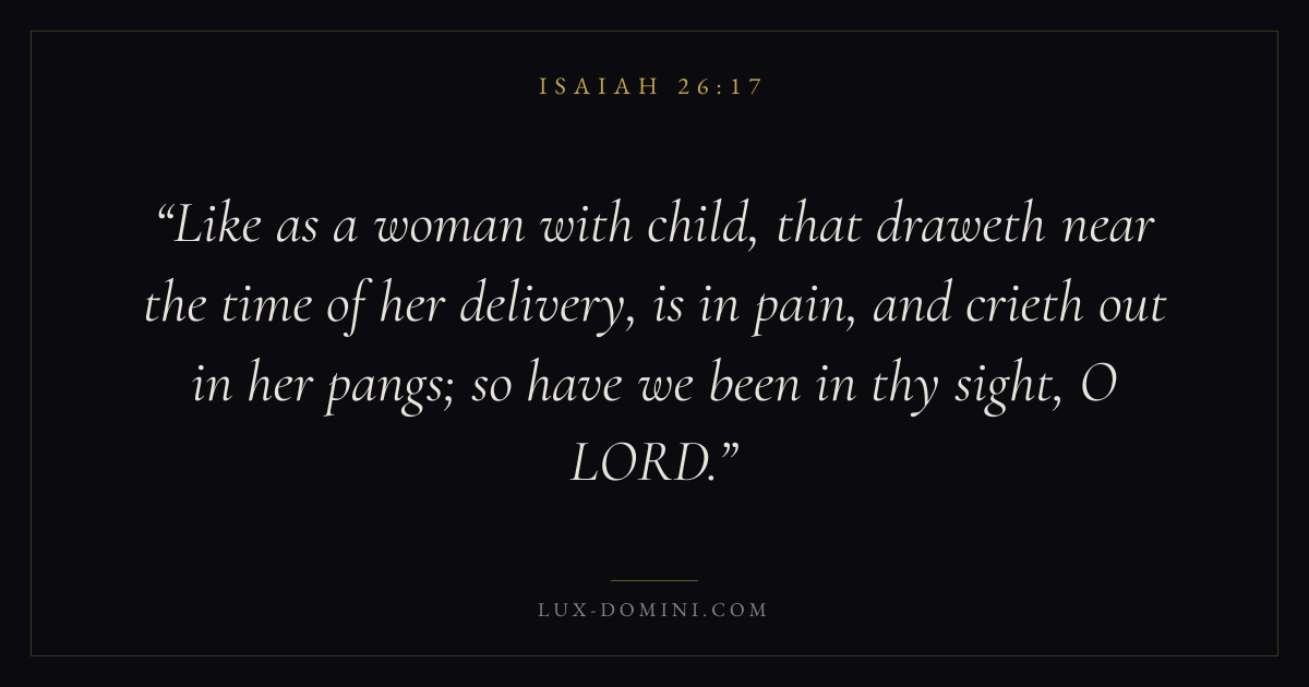Like as a woman with child, that draweth near the time of her delivery, is in pain, and crieth out in her pangs; so have we been in thy sight, O LORD.