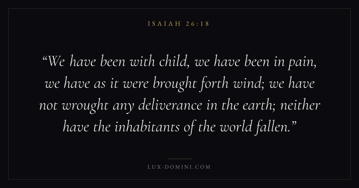 We have been with child, we have been in pain, we have as it were brought forth wind; we have not wrought any deliverance in the earth; neither have the inhabitants of the world fallen.