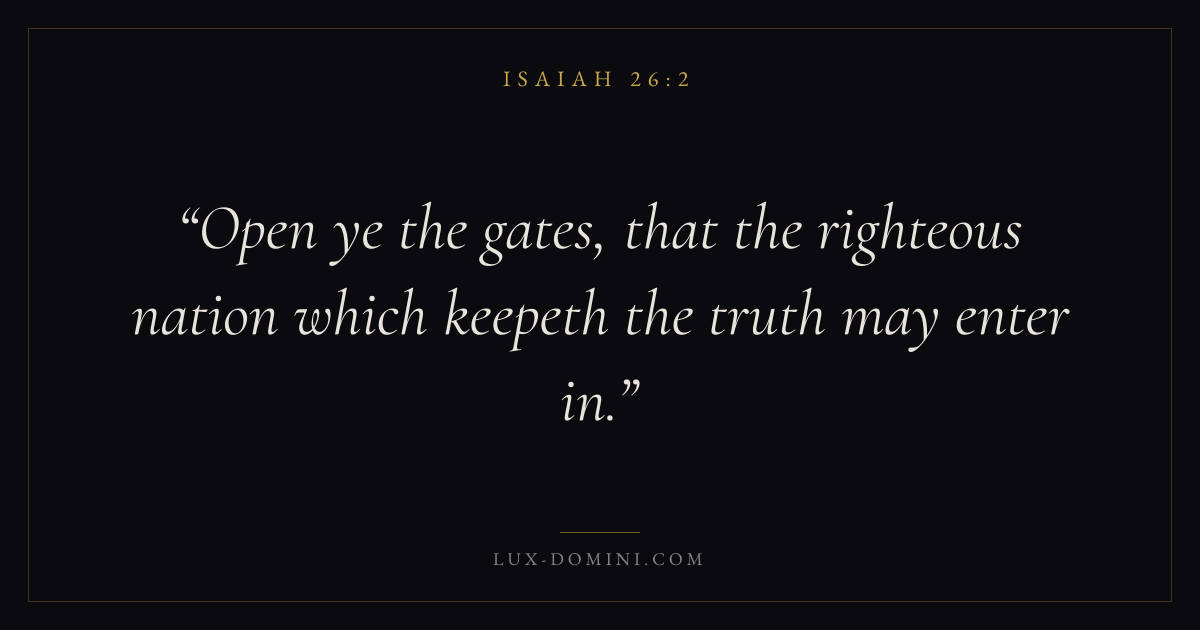 Open ye the gates, that the righteous nation which keepeth the truth may enter in.