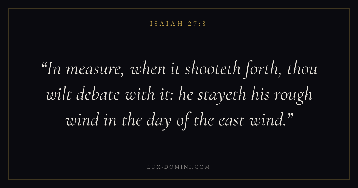 In measure, when it shooteth forth, thou wilt debate with it: he stayeth his rough wind in the day of the east wind.