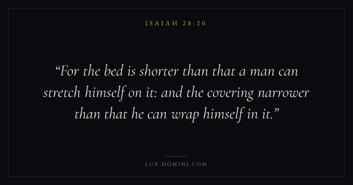 For the bed is shorter than that a man can stretch himself on it: and the covering narrower than that he can wrap himself in it.
