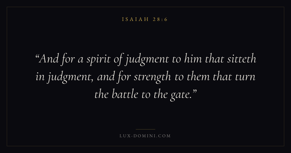And for a spirit of judgment to him that sitteth in judgment, and for strength to them that turn the battle to the gate.
