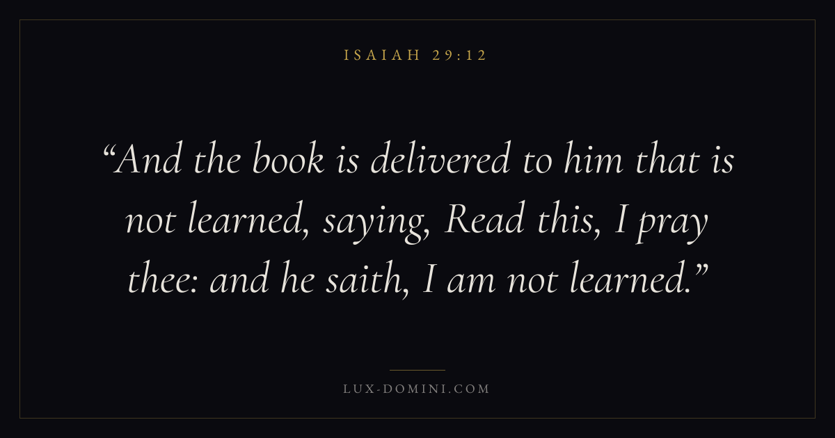 And the book is delivered to him that is not learned, saying, Read this, I pray thee: and he saith, I am not learned.