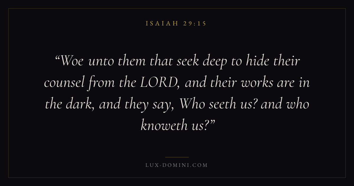 Woe unto them that seek deep to hide their counsel from the LORD, and their works are in the dark, and they say, Who seeth us? and who knoweth us?