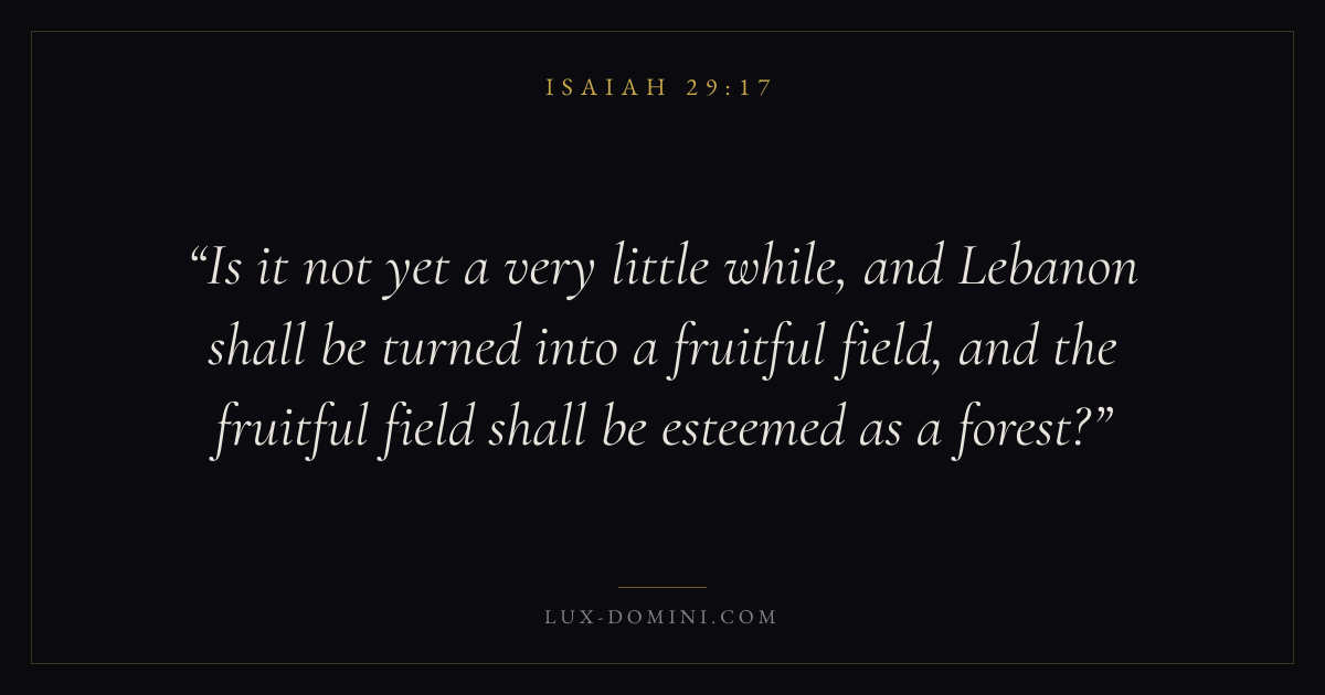Is it not yet a very little while, and Lebanon shall be turned into a fruitful field, and the fruitful field shall be esteemed as a forest?