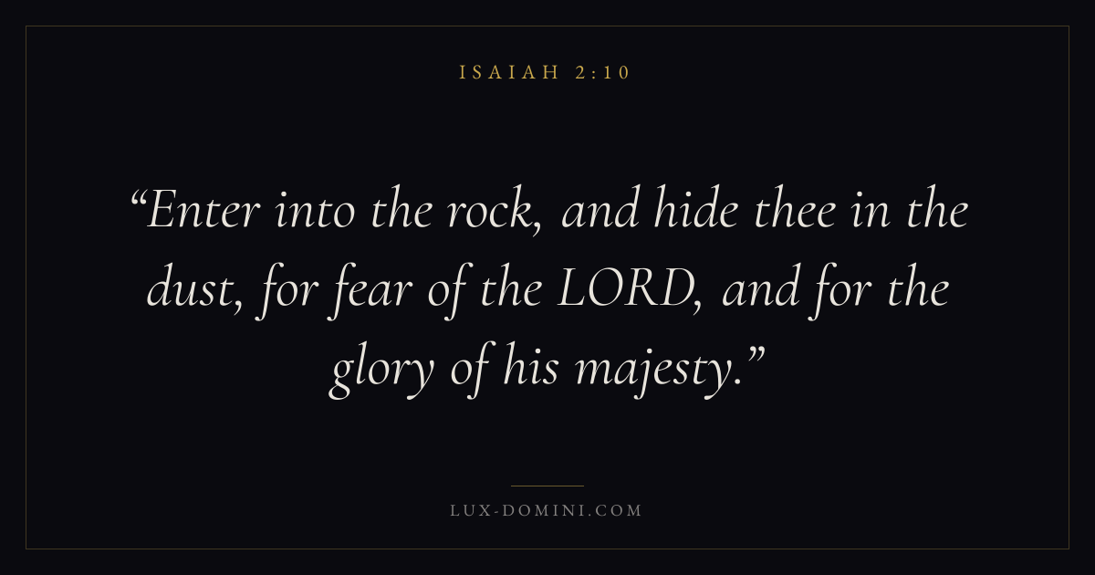 Enter into the rock, and hide thee in the dust, for fear of the LORD, and for the glory of his majesty.