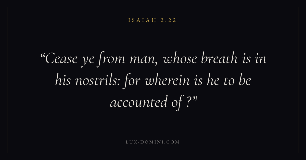 Cease ye from man, whose breath is in his nostrils: for wherein is he to be accounted of ?