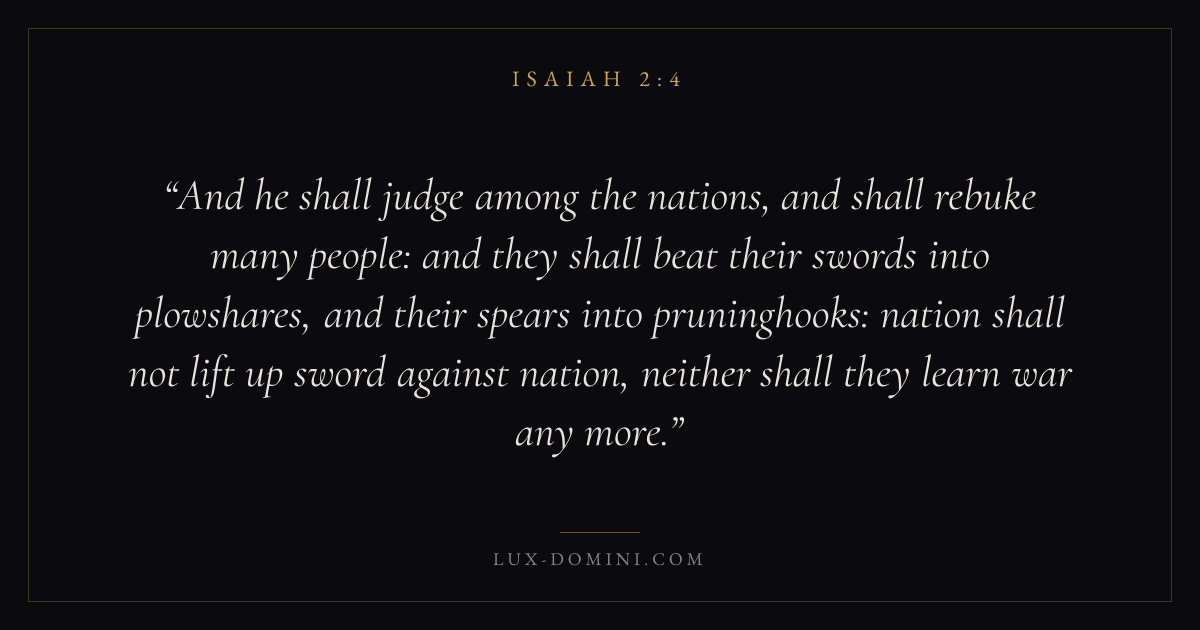 And he shall judge among the nations, and shall rebuke many people: and they shall beat their swords into plowshares, and their spears into pruninghooks: nation shall not lift up sword against nation, neither shall they learn war any more.
