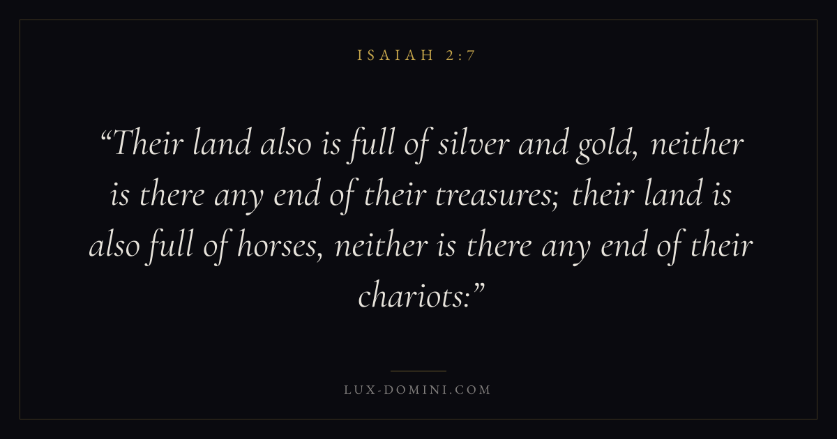 Their land also is full of silver and gold, neither is there any end of their treasures; their land is also full of horses, neither is there any end of their chariots: