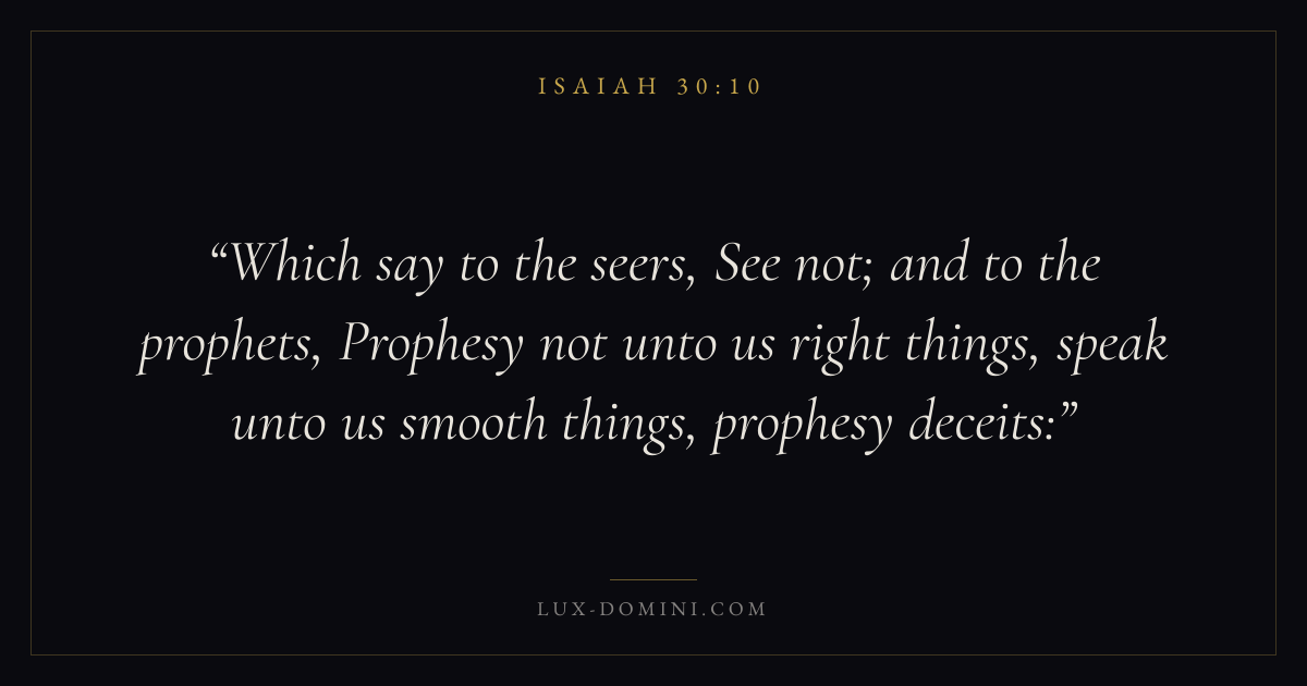 Which say to the seers, See not; and to the prophets, Prophesy not unto us right things, speak unto us smooth things, prophesy deceits:
