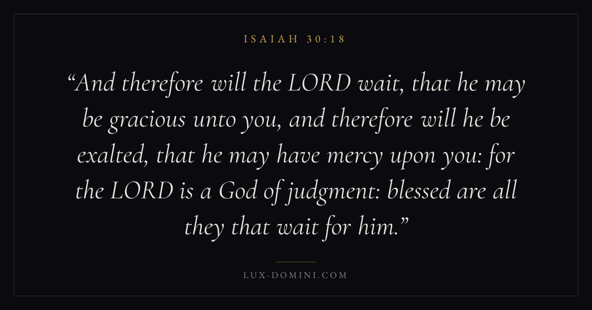 And therefore will the LORD wait, that he may be gracious unto you, and therefore will he be exalted, that he may have mercy upon you: for the LORD is a God of judgment: blessed are all they that wait for him.