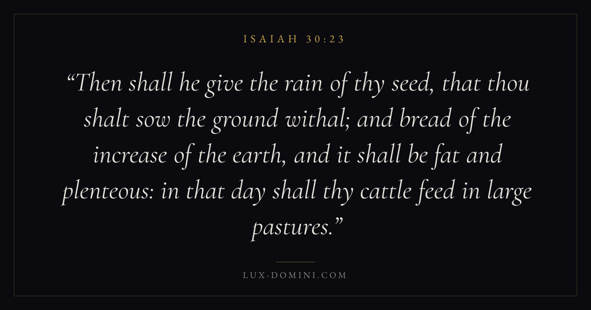 Then shall he give the rain of thy seed, that thou shalt sow the ground withal; and bread of the increase of the earth, and it shall be fat and plenteous: in that day shall thy cattle feed in large pastures.