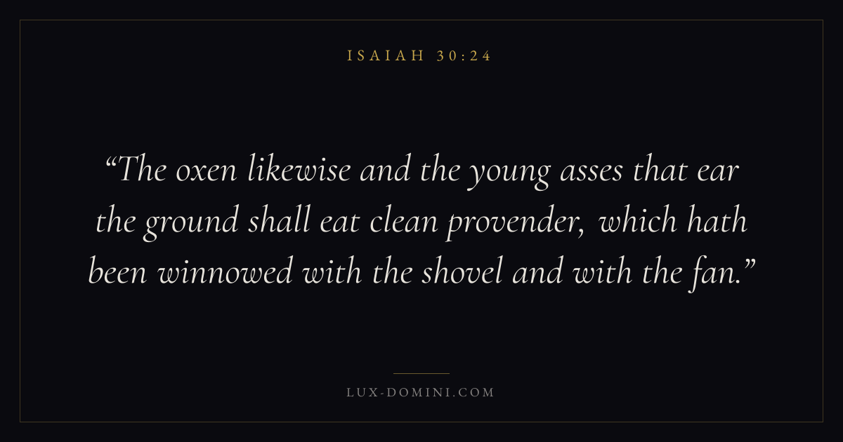 The oxen likewise and the young asses that ear the ground shall eat clean provender, which hath been winnowed with the shovel and with the fan.