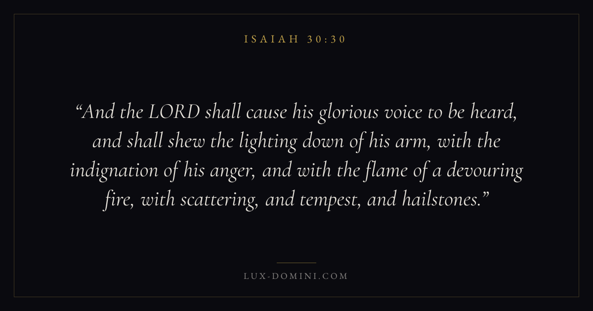 And the LORD shall cause his glorious voice to be heard, and shall shew the lighting down of his arm, with the indignation of his anger, and with the flame of a devouring fire, with scattering, and tempest, and hailstones.